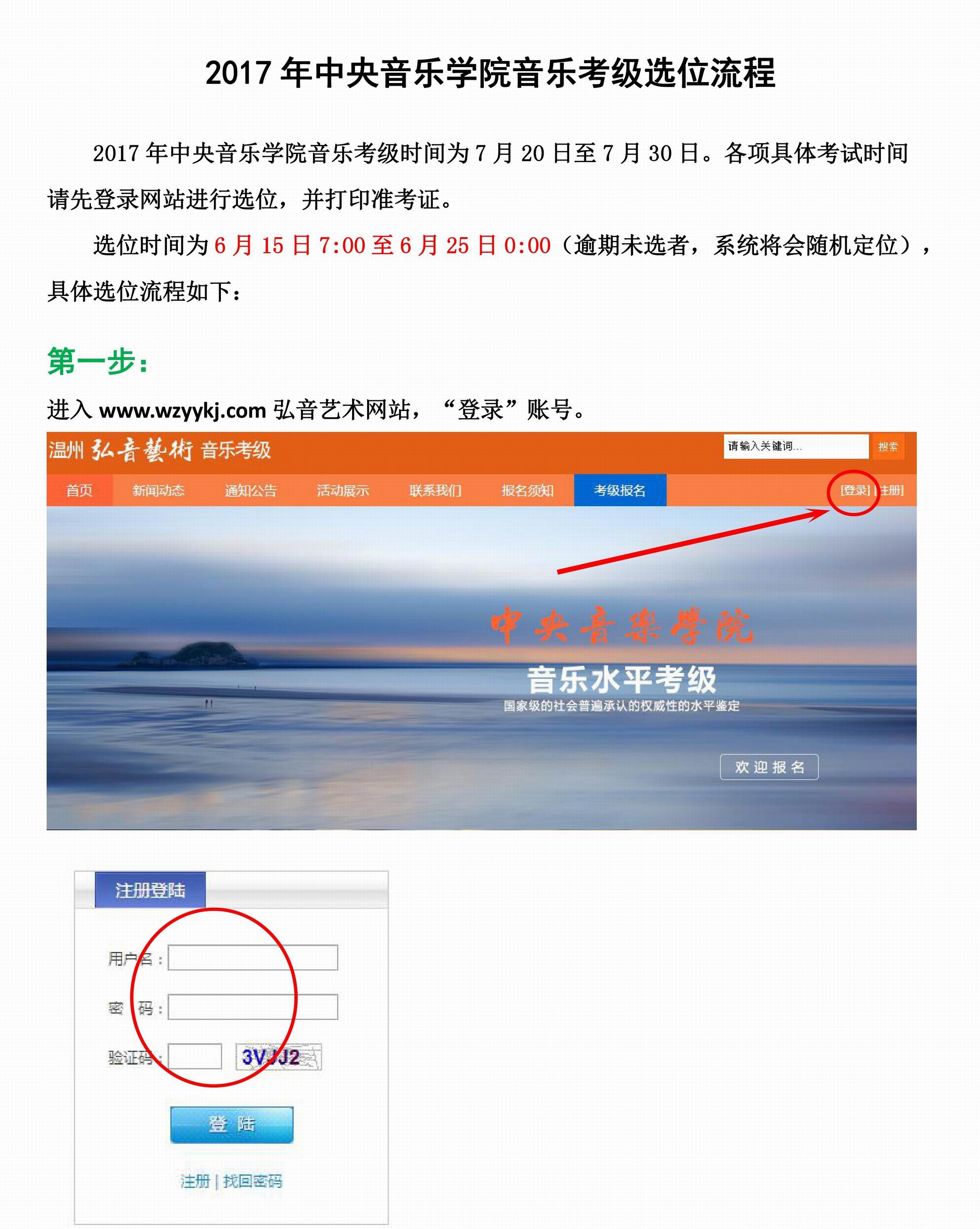 2017年中央音乐学院音乐考级选位流程
